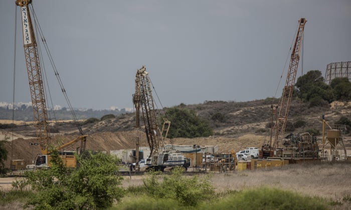 | Digging machinery on Israel’s border with Gaza. PM Benjamin Netanyahu plans ‘to encircle Israel with a security fence’. Photograph: Tsafrir Abayov/AP |