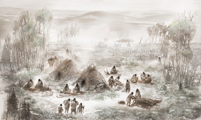 An illustration of the Upward Sun River camp in what is now Interior Alaska. Illustration by Eric S. Carlson in collaboration with Ben A. Potter