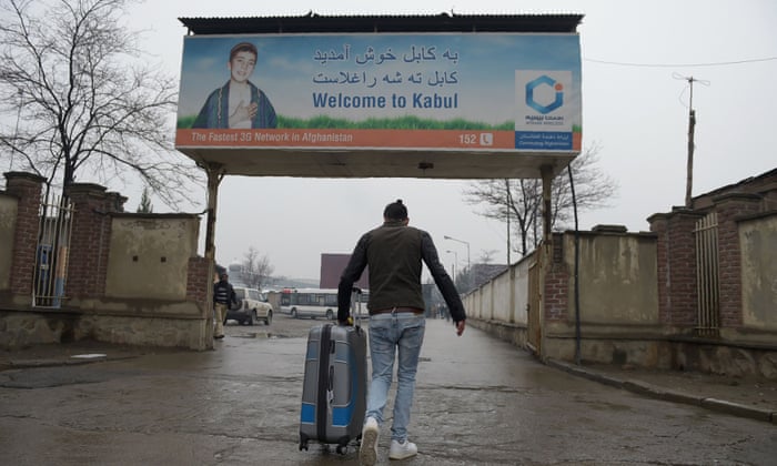 | An Afghan refugee who was deported from Germany arrives in Kabul. Photograph: Wakil Kohsar/AFP/Getty Images |