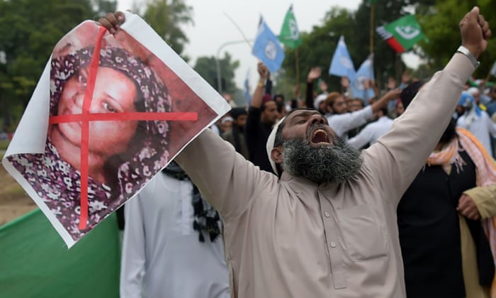 The verdict that freed her from death row convinced violent mobs to threaten her life as they embarked on a public, destructive rage, laying siege to major cities, blocking motorways, torching cars, buses and buildings, threatening the lives of the prime minister, the chief justice and the army chief. No mass arrests from the government. Instead Prime Minister Imran Khan appeared on national television to state that "This is not a service being done for Islam. This is enmity taking place against the country". However, he all too soon backed down.