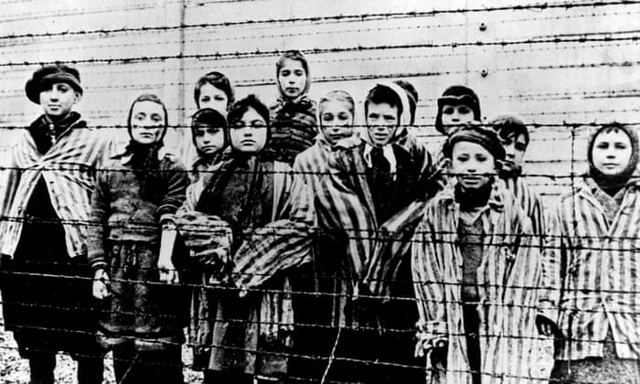 | A group of children in the Auschwitz concentration camp in January 1945, just after liberation by the Soviet army. Photograph: AP |